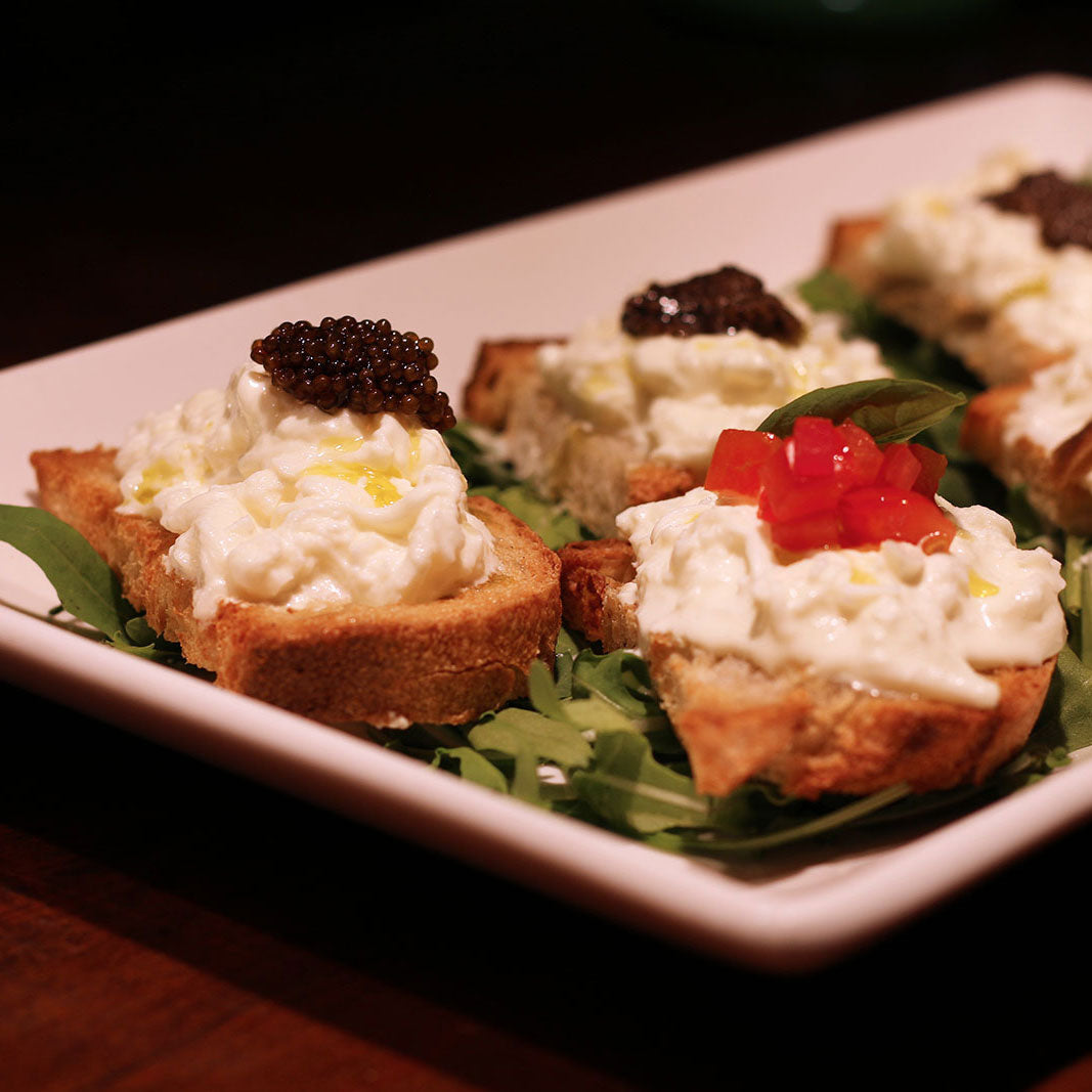 Toasted Bread, stracciatella cheeses and variety of tasty selected toppings